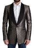 Steal the spotlight with this luxurious Dolce & Gabbana Jacquard Blazer Jacket. Perfect for upscale events, it features a dashing gold color with a lustrous finish that exudes sophistication. The slim-fit cut ensures a sleek silhouette, while the single-breasted one-button style offers a modern touch to this classic piece. Expertly crafted in Italy, this blazer is an emblem of high craftsmanship and exclusive fashion.