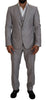 Step into the world of high fashion with this exquisite Dolce & Gabbana Sicilia suit. This luxurious 3-piece ensemble exudes elegance with its sleek gray silver finish. Perfectly tailored for the modern man, it features a slim-fit design with a classic single-breasted blazer, stylish vest, and crisp trousers. Craftsmanship is apparent throughout the pieces, from the two-button blazer closure and three-way pant zipper to the meticulous interior linings and pockets. This suit promises not only a sharp look but also unmatched Italian quality.