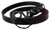 Indulge in Italian elegance with this exquisite Costume National fashion belt. Perfectly blending style and quality, this 100% genuine leather belt features a chic, solid pattern accented with a distinct logo on the buckle, representing luxury and sophistication. The dual-tone maroon and black design adds a touch of modern flair to any ensemble. Crafted with precision in Italy, this belt is an emblem of fashion-forward accessorizing.