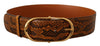 Elegant Maroon Leather Belt with Gold Accents