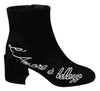 Step into luxury with these stunning Dolce & Gabbana ankle boots. Designed to make a statement, these boots feature a beautiful black velvet composition accented by gleaming gold zippers and dazzling crystal-embellished heels. Crafted with attention to detail in Italy, they promise not only high style but also utmost comfort and premium quality. Add a touch of opulent charm to any outfit with these exquisite heels.