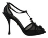 Gorgeous brand new with tags, 100% Authentic Dolce & Gabbana t-strap heels sandals with floral, faux pearl and crystal embellishment. Model: Heels sandals Colour: Black Material: 78% Viscose 22% Silk Logo details Very high quality and comfort Made in Italy