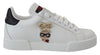 Gorgeous brand new with tags, 100% Authentic Dolce & Gabbana white Portofino sneakers with bright appliqué covered in sparkling glitter. Crafted from matte smooth leather, this piece features a red and blue heel tab and a black patch with the brand’s logo on the tongue. Model: Portofino Sneakers Colour: White Material: 90% Leather 4% Viscose 3% Polyester 3% PU Sole: Rubber Logo details Made in Italy Very exclusive and high craftsmanship