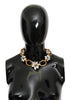 Indulge in the opulent elegance of this Dolce & Gabbana necklace. Adorned with sumptuous gold plating and a medley of crystal-embellished pendants, including luscious fruits and delicate flowers, this jewelry piece exudes Italian luxury. The iconic ‘DG’ logo sparkles amidst the pendants, while a secure lobster clasp closure ensures a comfortable fit. Bring a touch of glamour to any ensemble with this meticulously crafted statement necklace, proudly made in Italy.