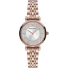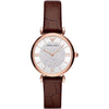 Introducing the epitome of sophistication and timeless elegance, the Emporio Armani ladies’ watch, a luxurious timepiece perfect for the discerning woman. With its sleek steel craftsmanship and radiant bronze tones, this watch promises to be a statement accessory for any ensemble. The watch is lovingly encircled by delicately placed stones, augmenting its luxurious allure, and boasts a quartz movement, ensuring precise timekeeping. Its slender 14mm bracelet and light profile combine to offer both comfort and class, making it a seamless addition to any wardrobe.